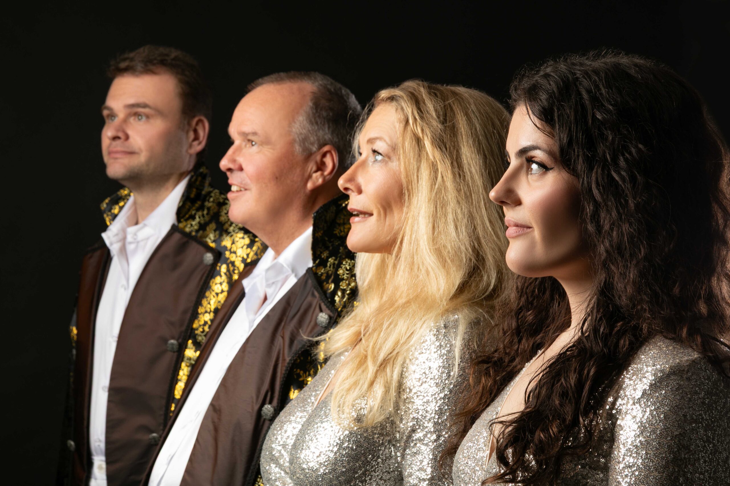 🌟 Authentische Kostüme und die ikonische ABBA-Kombination: zwei Frauen, zwei Männer – live auf der Bühne.